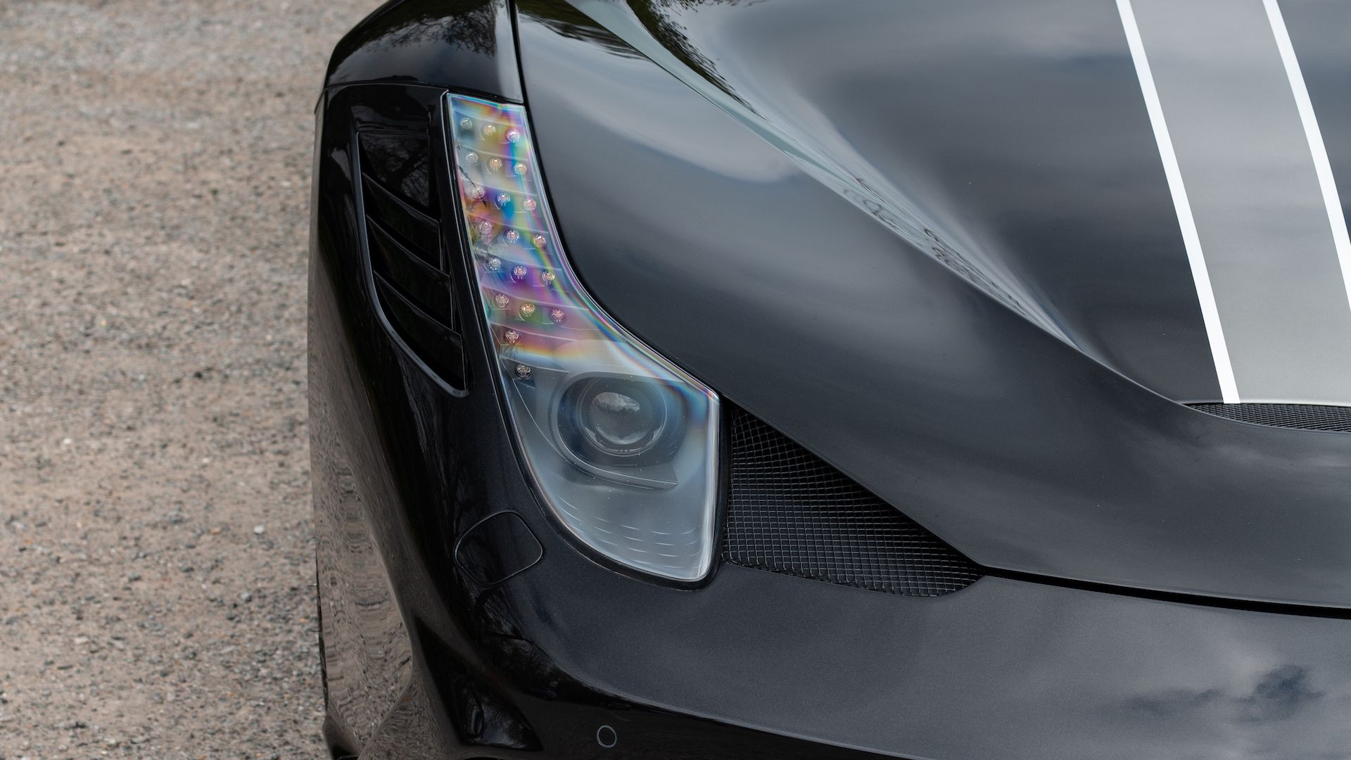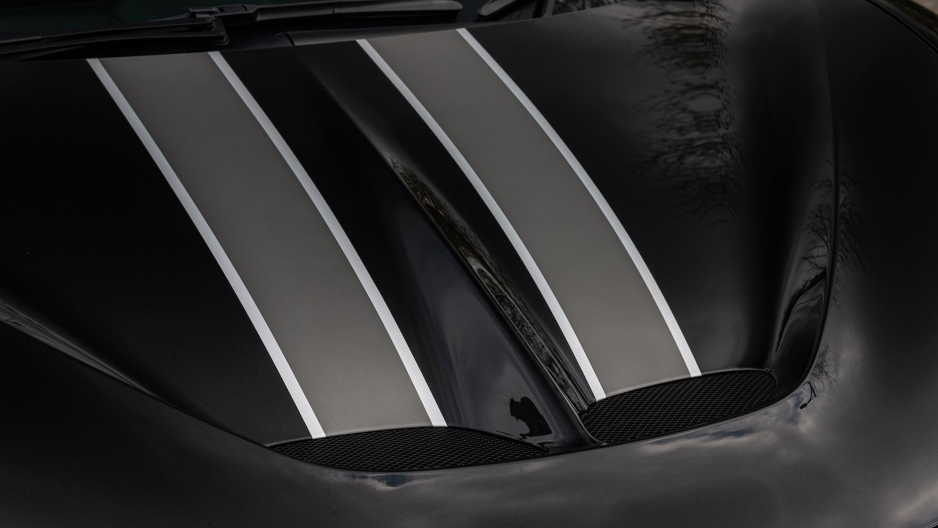 Finished in Metallic Nero Daytona and Argento Factory Racing Stripes