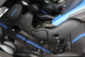Developed in partnership with Aston Martin Racing, the Vulcan’s 820 HP naturally aspirated engine is based on that of their GT3 racer, but enlarged to a full 7.0 liters and electronically managed by Cosworth ECU technology. The Inconel and titanium exhaust system’s best feature comes during downshifts, when the side pipes crackle and pop while emitting flashes of blue flames. The Vulcan engine can be set at three output levels, allowing the driver to experience increasing power as his skill level improves with track time.